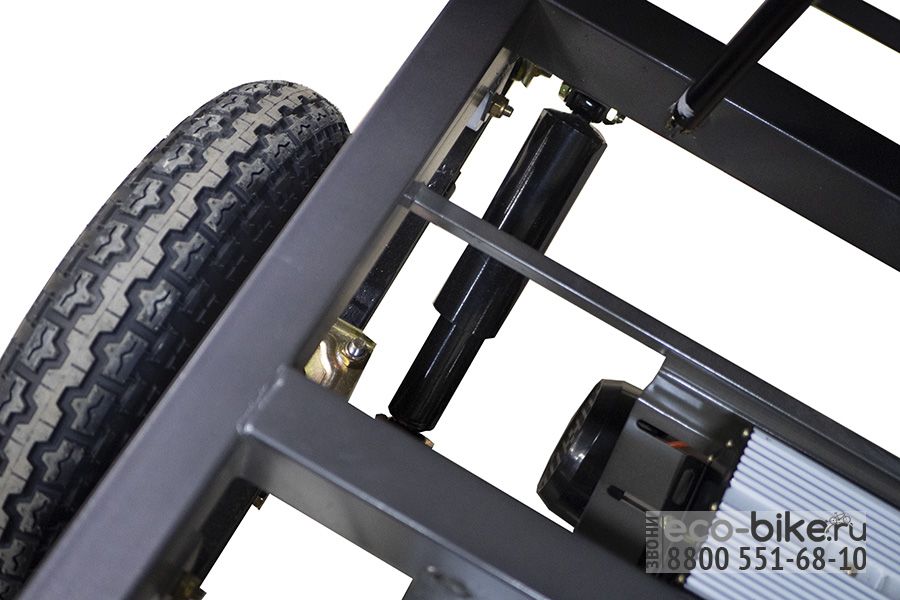 • оснащен 1500 ваттным мотором, который разгоняет электрическую тележку до 25 км/ч;